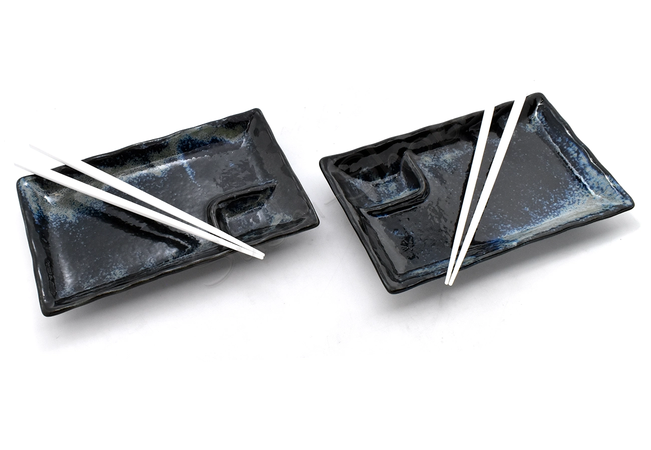 Komplet do sushi składający się z talerzy ceramicznych z wbudowaną sosjerką – elegancja i funkcjonalność w jednym
