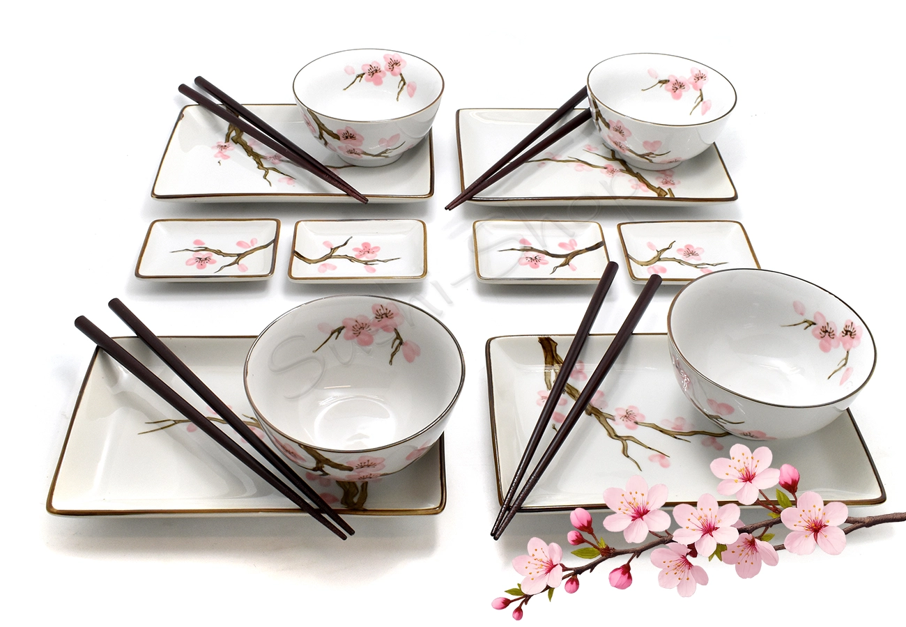 Przenieś się wprost do kwitnącej Japonii podczas domowej uczty sushi. Zestaw Momoiro no Sakura (Różowa Wiśnia) to połączenie tradycyjnej estetyki z funkcjonalnością, które zachwyci Twoich gości i nada każdemu posiłkowi wyjątkową oprawę.