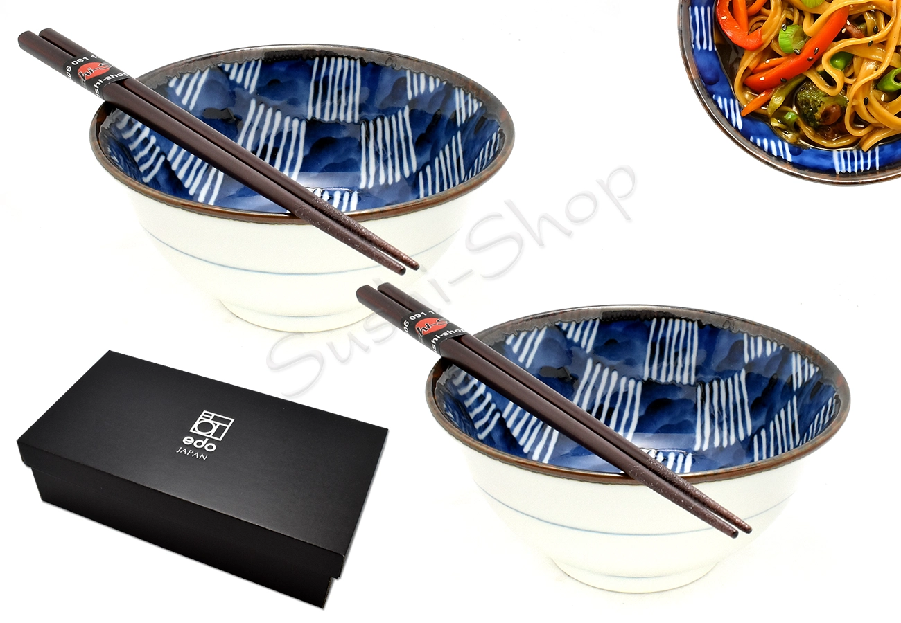 Komplet misek -  Chesu-ban Blue 400ml BOX to stylowy zestaw inspirowany japońską estetyką, łączący elegancję porcelany z tradycyjnym wzornictwem. Idealny do serwowania dań stir-fry, ryżu lub zup orientalnych.