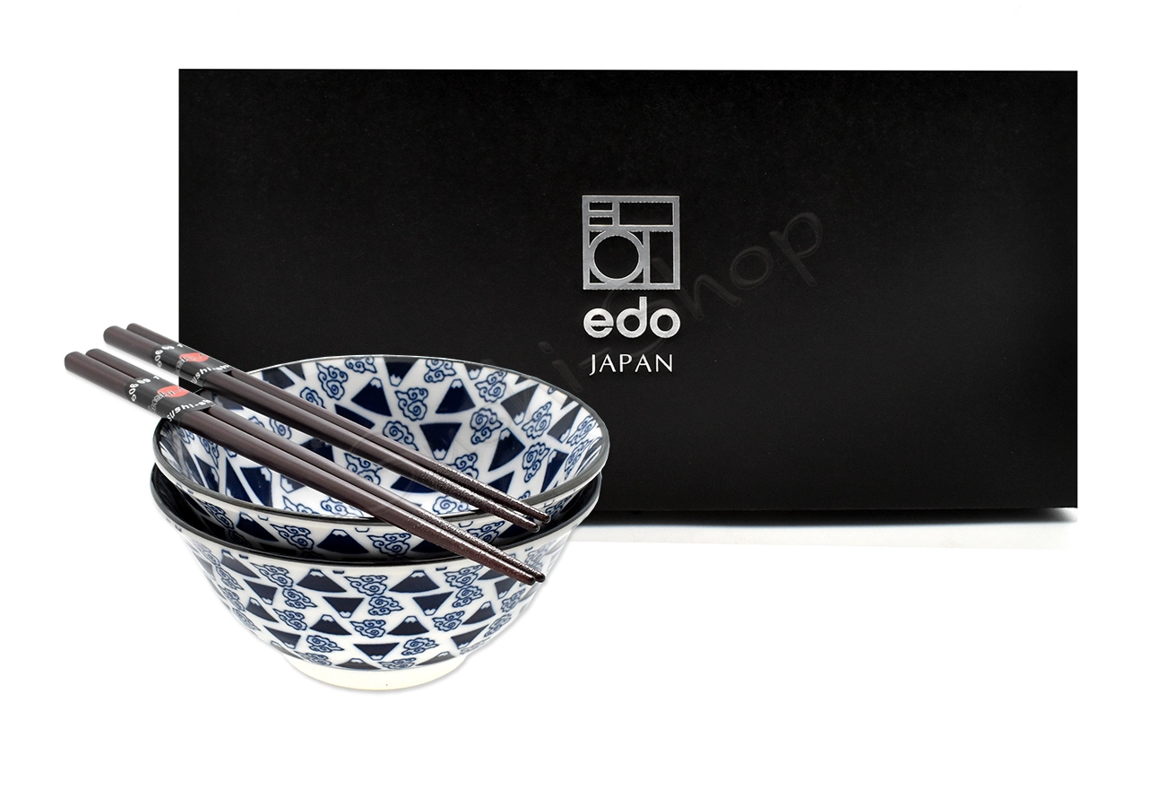 Komplet misek -  Kazan Blue 400ml BOX to stylowy zestaw inspirowany japońską estetyką, łączący elegancję porcelany z tradycyjnym wzornictwem. Idealny do serwowania dań stir-fry, ryżu lub zup orientalnych.