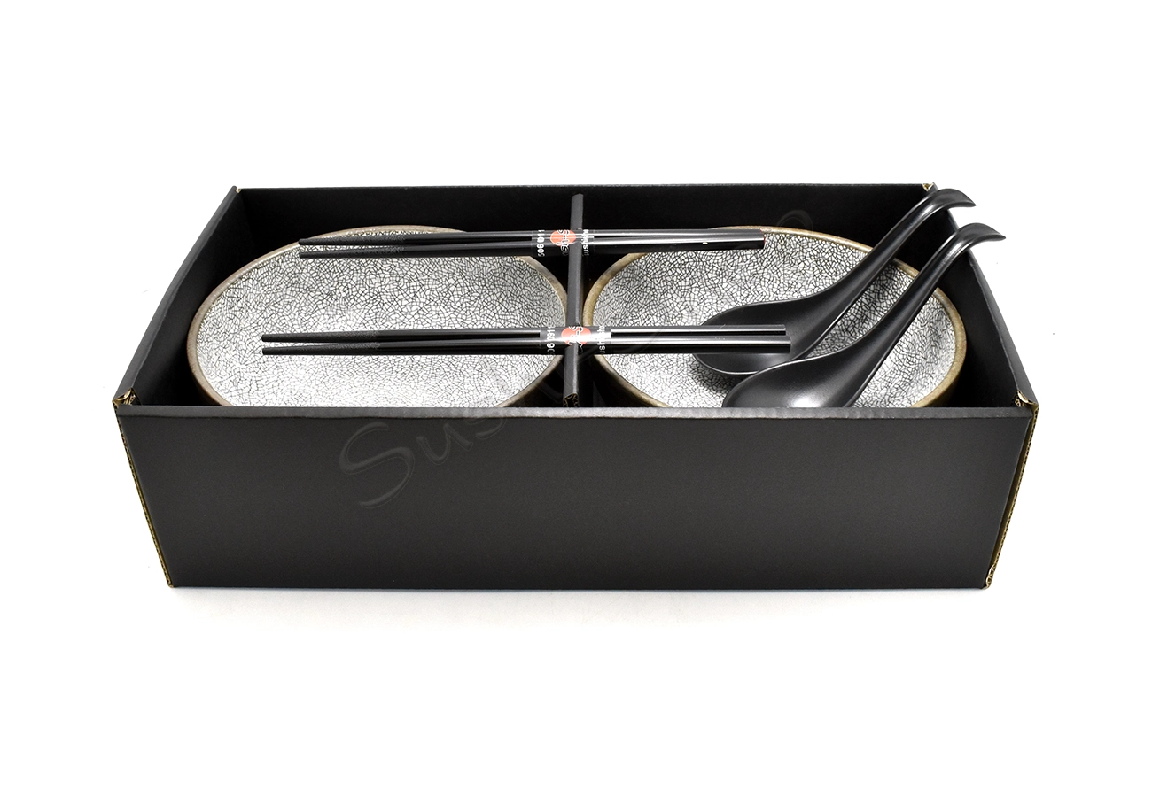 Zestaw zapakowany jest w eleganckie, czarne pudełko – perfekcyjny prezent dla miłośników kuchni azjatyckiej lub stylowy dodatek do Twojej jadalni.