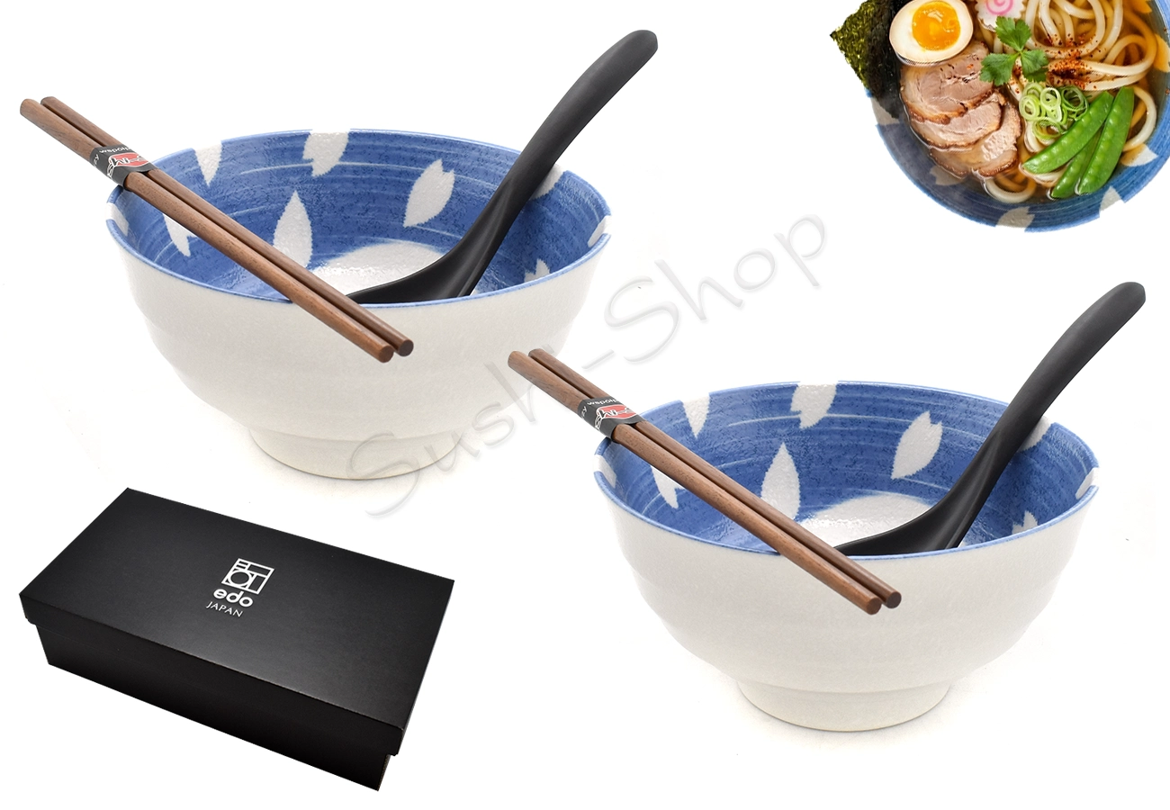 Kompletny zestaw: Otrzymujesz wszystko, czego potrzebujesz do serwowania dań kuchni azjatyckiej – miski, dopasowane łyżki oraz drewniane pałeczki.