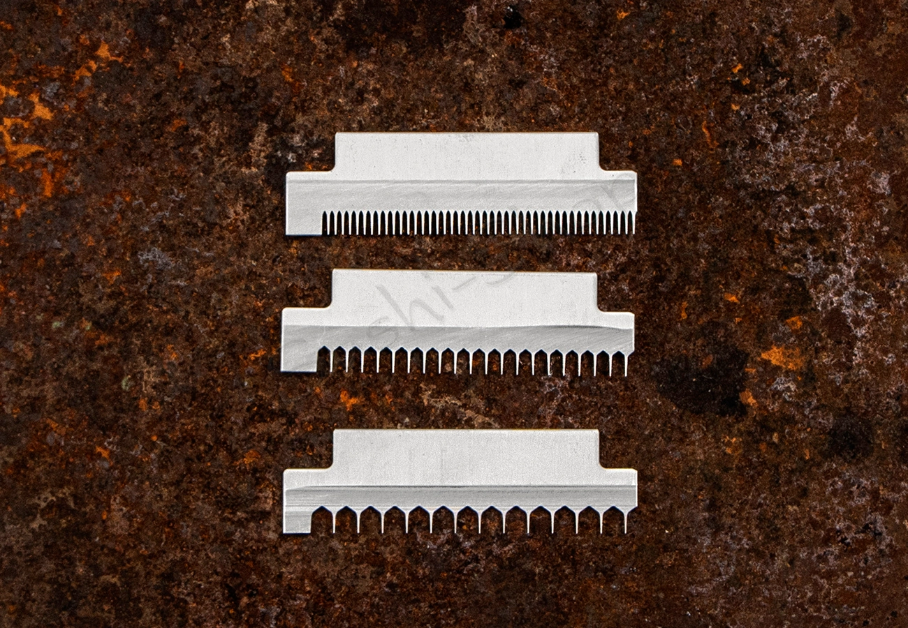 4 wymienne ostrza w zestawie: jedno proste i trzy ząbkowane (1 mm, 2,5 mm, 4 mm)
