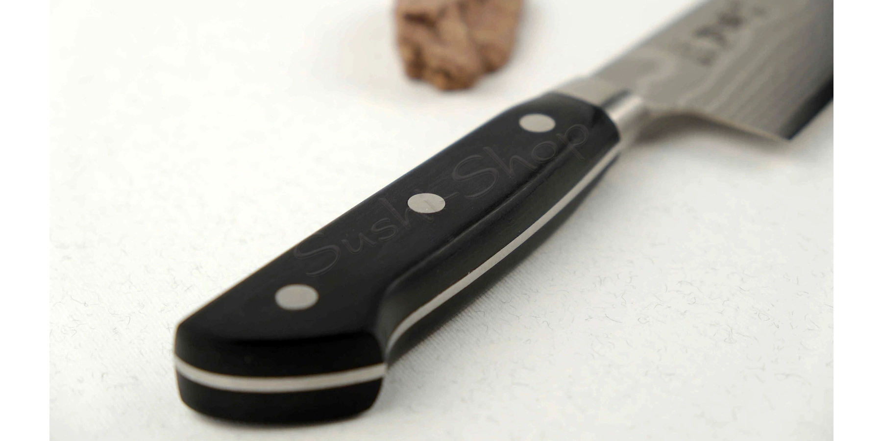 Noże z serii KD przyciągają uwagę cudownym wzorem damasceńskim na ostrzu wykutym ze stali VG-10. Każdy nóż jest przez to niepowtarzalny i nie znajdziemy dwóch takich samych. Klinga ze świetnej jakości stali VG-10 została zahartowany do poziomu 61 HRC co daje ogromną twardość i niepowtarzalną ostrość. Stonowaną stylistykę dopełnia czarna rękojeść z micarty w stylu europejskim. Jest ona zwieńczona stalowym pierścieniem zapobiegającym przedostawaniu się wilgoci oraz ułatwiającym utrzymanie noża w czystości.