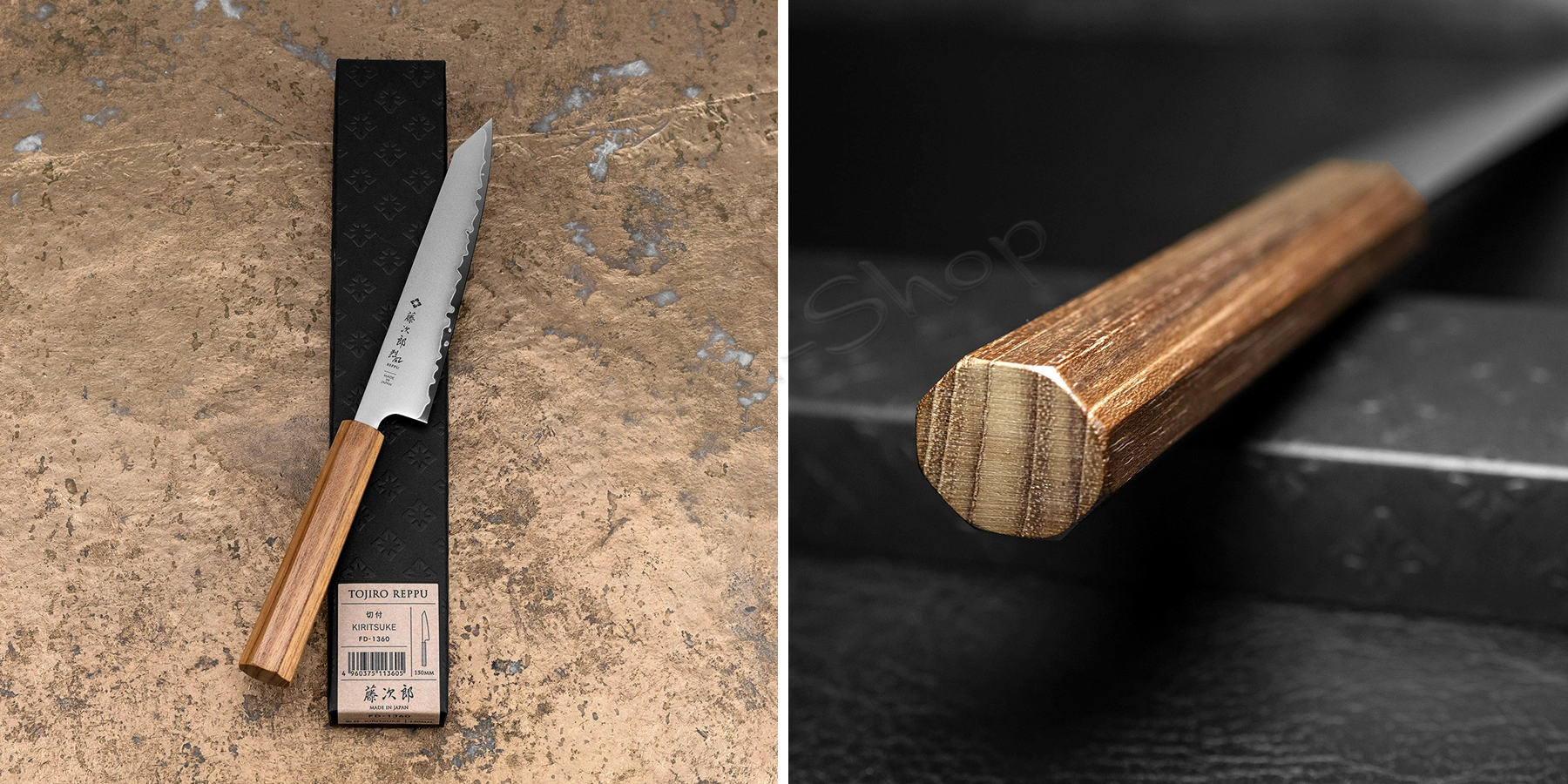 Ostrze o długości 15 cm zapewnia dużą kontrolę i precyzję – bez problemu poradzi sobie z krojeniem mniejszych i średnich produktów, takich jak warzywa, owoce czy mięso. Przy odrobinie wprawy nóż nadaje się także do obierania, co czyni go wyjątkowo wszechstronnym narzędziem. Charakterystyczny kształt kiritsuke petty łączy funkcjonalność z japońską estetyką, oferując wygodę i dokładność przy każdym cięciu.
