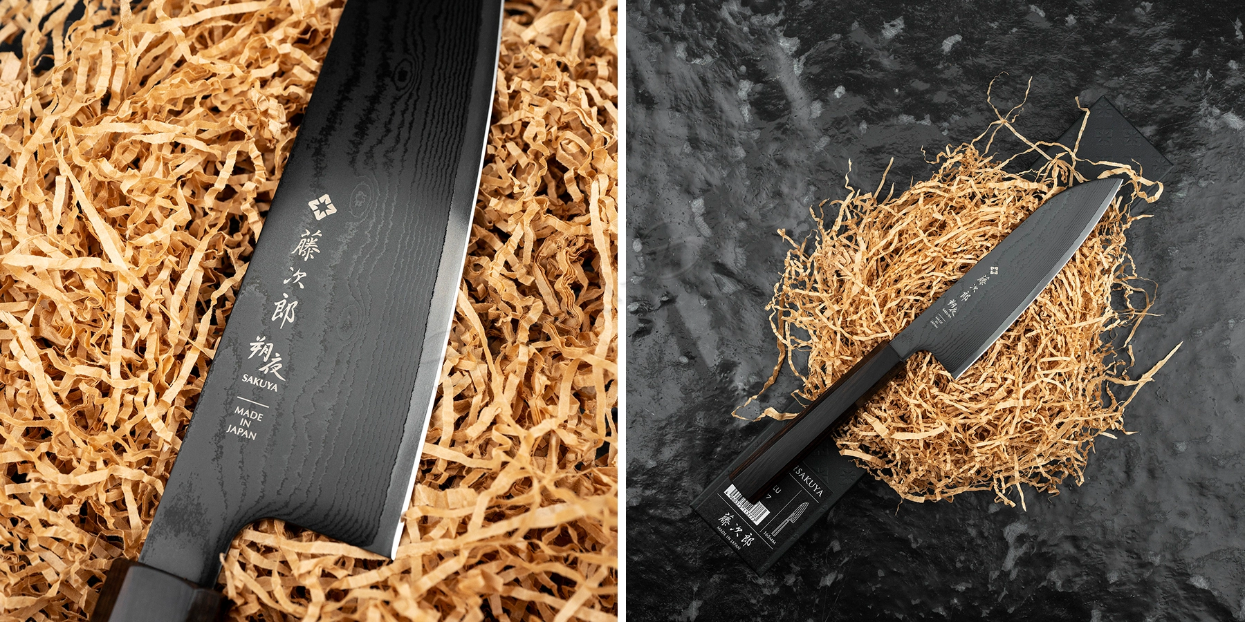 Seria Sakuya Black wyróżnia się charakterystycznym, czarnym ostrzem damasceńskim. Widoczny wzór warstw stali układa się w subtelne, falujące linie, a głęboka, czarna kolorystyka nadaje nożowi nowoczesnej elegancji i wyjątkowego stylu, który trudno pomylić z jakimkolwiek innym.