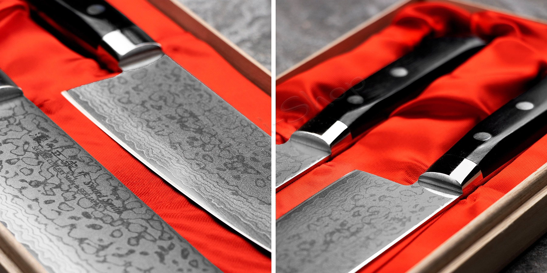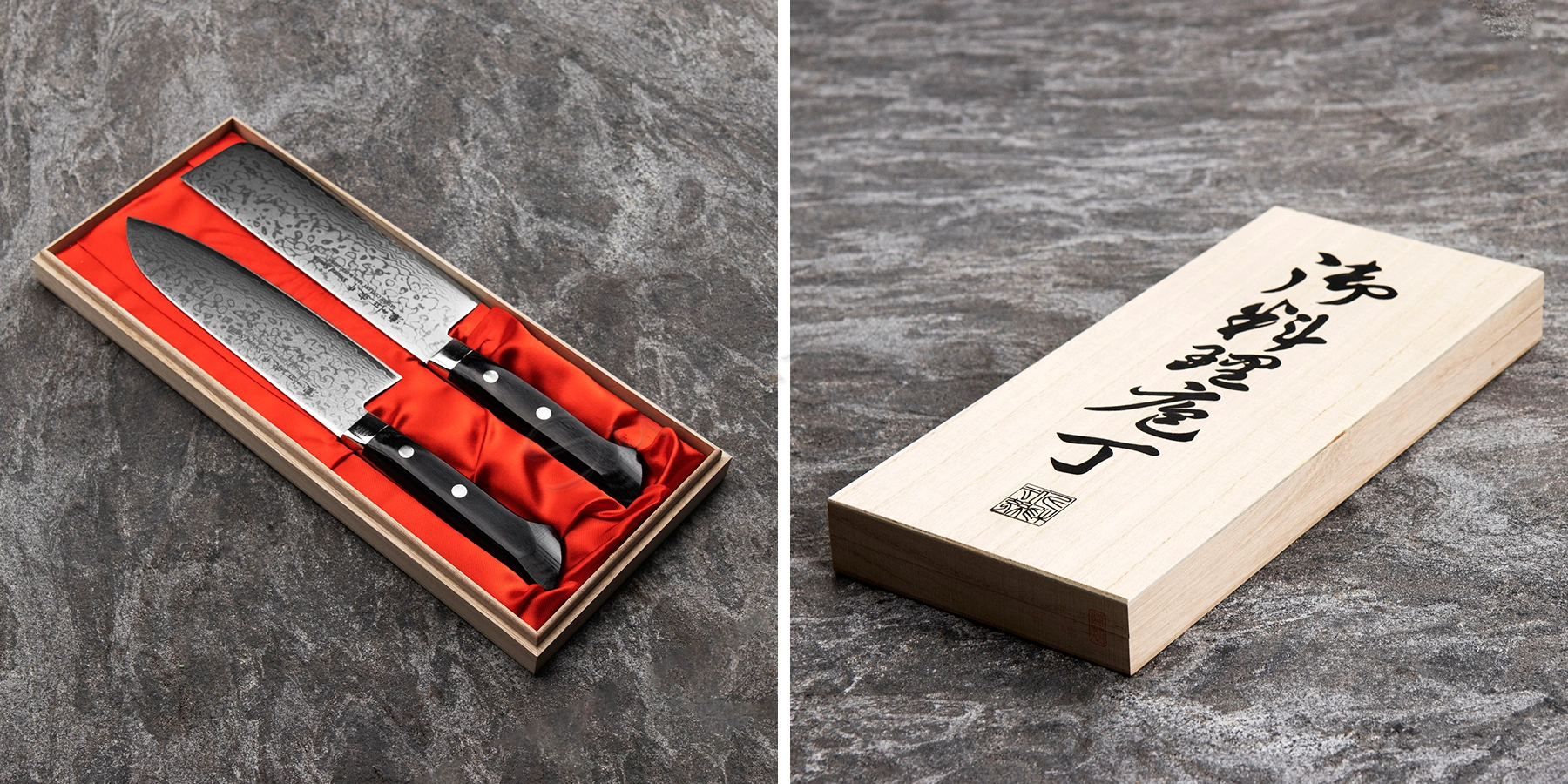 Elegancki zestaw dwóch japońskich noży kuchennych to świetny wybór zarówno dla pasjonatów gotowania, jak i jako stylowy prezent. Całość zapakowana jest w estetyczne pudełko, które podkreśla wyjątkowy charakter produktu.